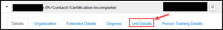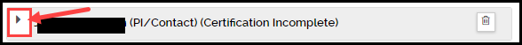 - Under the Key Personnel option and the Personnel sub-option, click the triangle on the investigator’s panel whose profile you would like to change